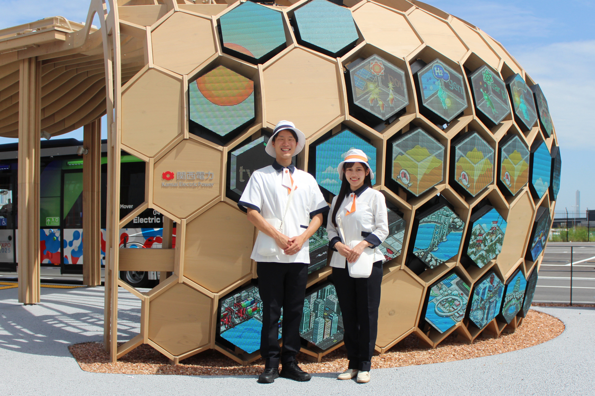企業、団体のお客様が関西電力の取組みを視察するためにご来場される際、万博会場内の各所をご案内、説明を行うのがVIPアテンダントスタッフを務める関西電力社員です。