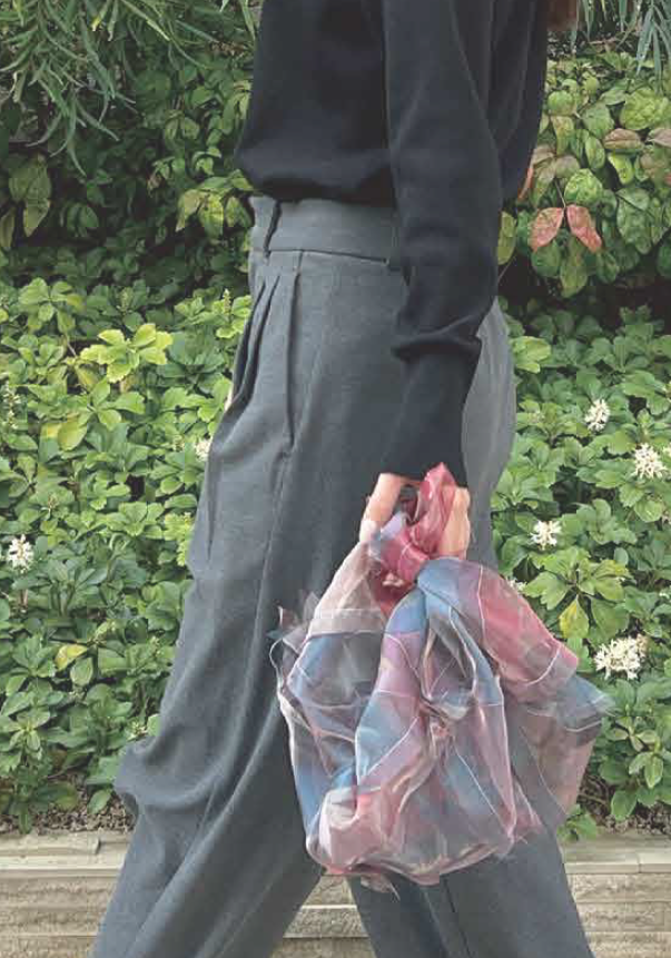 ノベルティとしてお渡しする風呂敷『BATTAFLY』は、ファサード膜の端材から創られているアップサイクル製品です。
