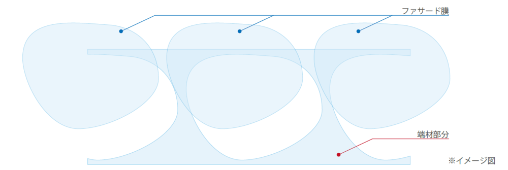 モチーフに張られたファサード膜のオーガンジーは、そのフレームの有機的な形状に合うように裁断されています。