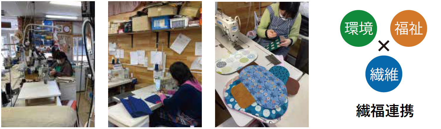 クラフト的要素の高い「アップサイクル(環境)」の縫製案件、就労継続支援B 型事業所で縫製して頂く事で福祉貢献も同時に行なうことが出来ました。